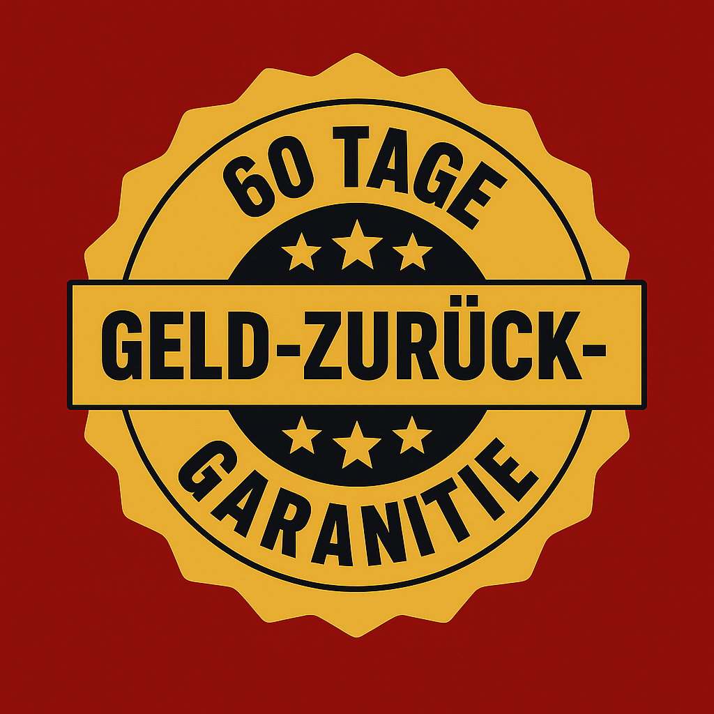 Ihre heutige Bestellung ist durch unsere eiserne 60-tägige 100% Geld-zurück-Garantie abgedeckt. Wenn Sie von den Ergebnissen nicht beeindruckt sind, schreiben Sie uns einfach und wir erstatten Ihnen jeden einzelnen Cent zurück.